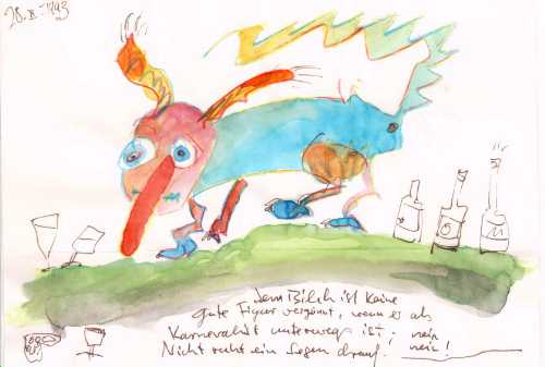 Dem Bilch ist keine gute Figur vergönnt, wenn er als Karnevalist unterwegs ist. Nicht ruht ein Segen drauf! Nein, nein!